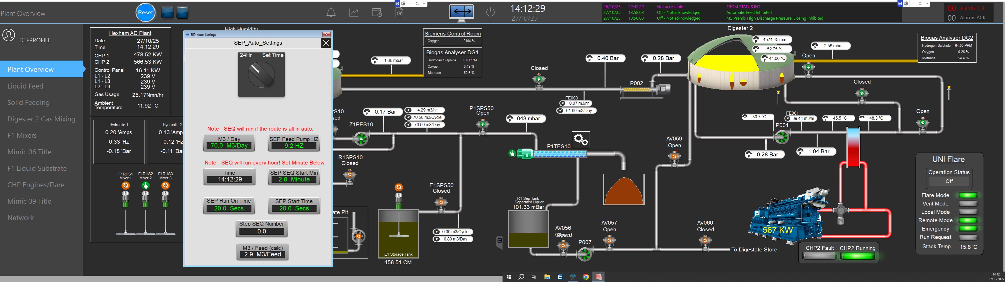 This project involved the remote configuration and development of a new control and SCADA system for a biogas facility.